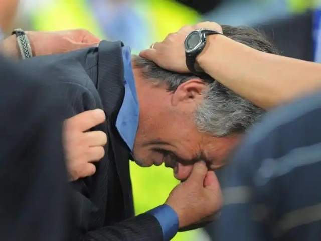 于是,那个夜晚,全世界球迷都看到了穆里尼奥的另一面。在伯纳乌的停车场,他没有勇气跟大部队一起走,而是选择了一个人,像个找不到家的孩子,等待着马特拉齐来告别。当马特拉齐出现的那一刻,这个一向以冷酷示人的“狂人”,再也绷不住了。他抱着这位为他冲锋陷阵的铁卫,哭得像个孩子,泣不成声。