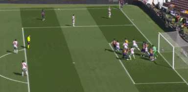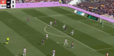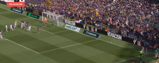 第24分钟,坎塞洛角球传中,落点恰到好处,阿劳霍后点头球攻门,击中立柱入网,巴萨打破僵局,1-0!