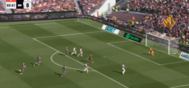 第13分钟,西塞后场传球被断,拉菲尼亚带球长驱直入,单刀推射远角稍稍打偏,浪费绝佳机会。