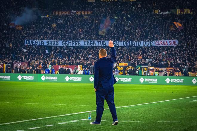 “你永远不会成为我们的敌人”,罗马球迷横幅致敬客队主帅德罗西