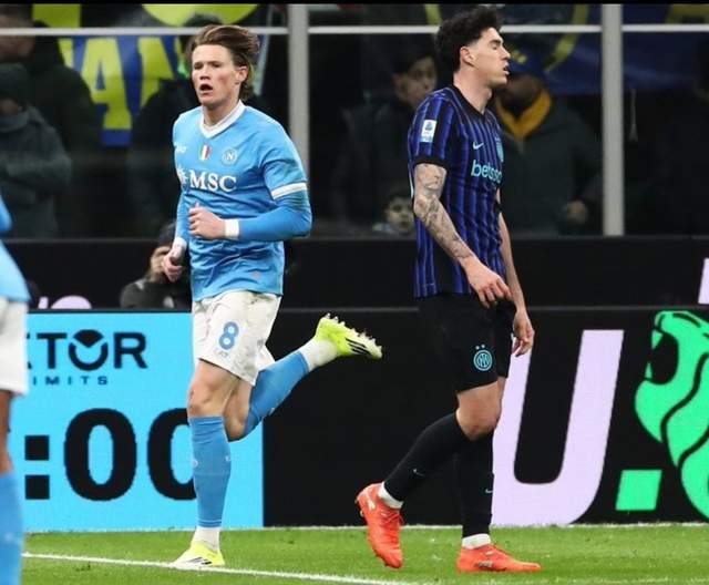 然后过了10分钟后,国际米兰后防线防守不够稳固,右路缺少邓弗里斯还是出现了漏洞。那不勒斯抓住机会,由麦克托米奈进球。比分定格为2-2!