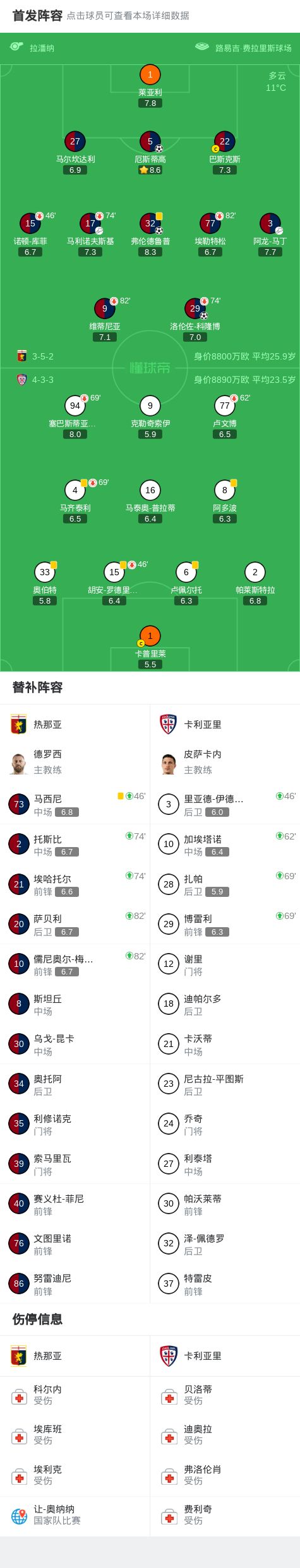 热那亚30大胜卡利亚里,厄斯蒂高、弗伦德鲁普破门