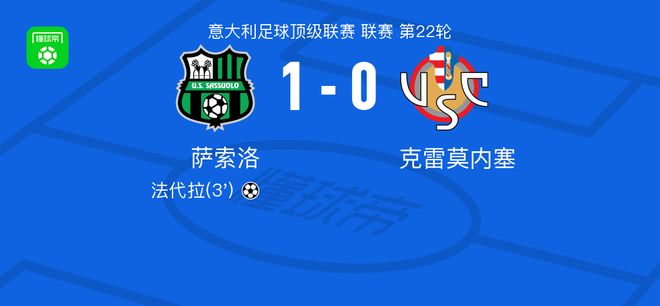 - 百度搜索:萨索洛10克雷莫内塞,法代拉助球队取胜