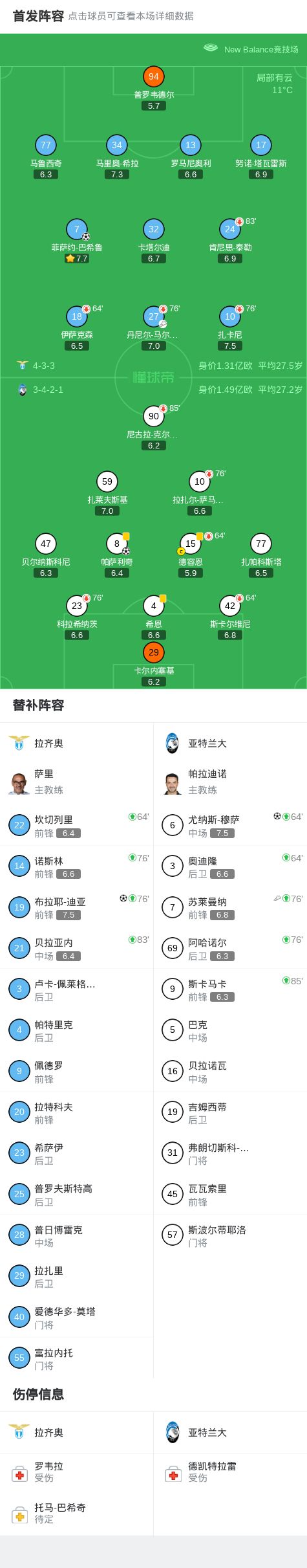 意杯半决赛首回合拉齐奥22亚特兰大,尤纳斯穆萨绝平比分