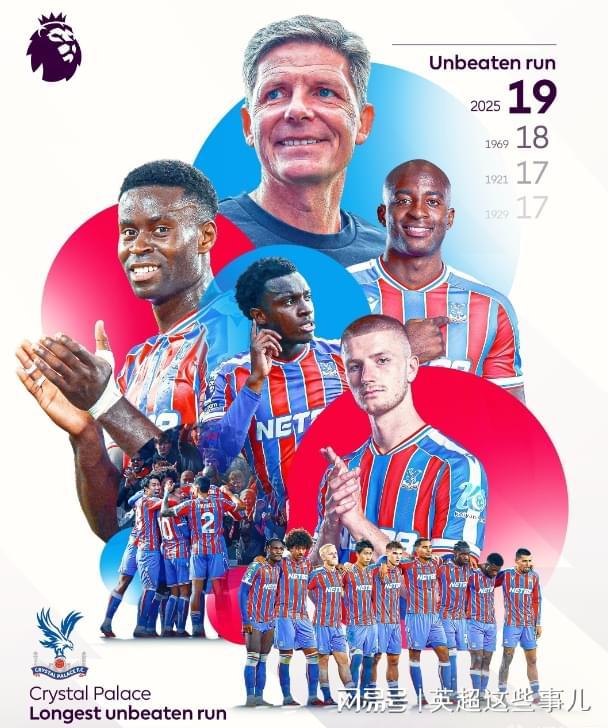 水晶宫是英超本赛季最大的话题之一。从上赛季末段开始,水晶宫就势不可挡,先是爆冷击败曼城拿到足总杯冠军,队史首次拿下重大赛事冠军,随后又在赛季前的社区盾杯上力克利物浦折桂,再拿一座冠军奖杯。随后的英超比赛中,水晶宫延续着出色的发挥,前6轮保持不败,包括客场战平切尔西,以及上一轮绝杀利物浦,成为英超截至目前唯一不败的球队。在周中的欧协联赢球后,水晶宫连续19场比赛不败,刷新了队史连续不败场次纪录。