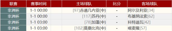 其他赛事比分:
