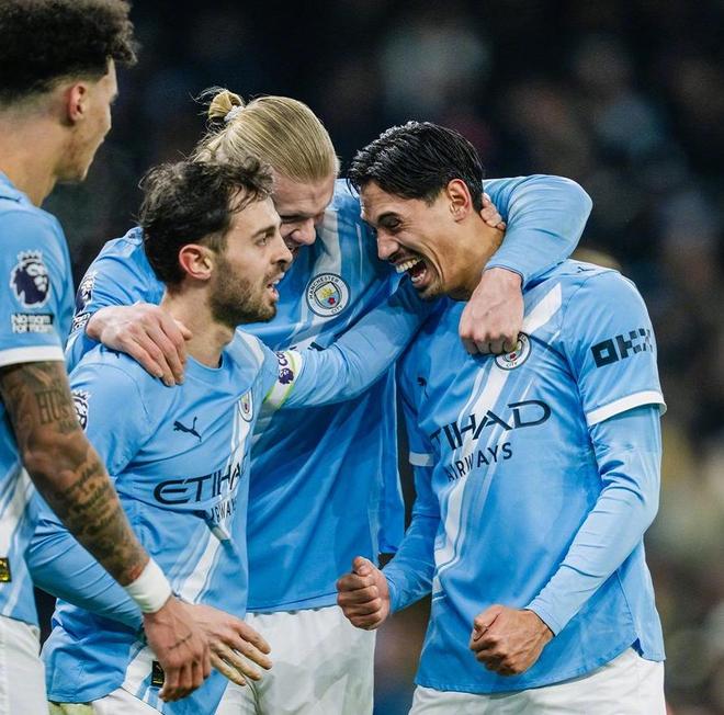 在两支球队最近的11次直接对话中,曼城取得了9胜2平的不败战绩,为了延续强势的发挥,瓜迪奥拉此役在主场尽遣主力出战,在4321的阵型中,让多纳鲁马镇守龙门,奥赖利、格瓦迪奥尔、鲁本迪亚斯和努内斯构筑后防,赖因德斯、罗德里和B席坐镇中场,福登和谢尔基搭档双前腰,单箭头则是哈兰德。