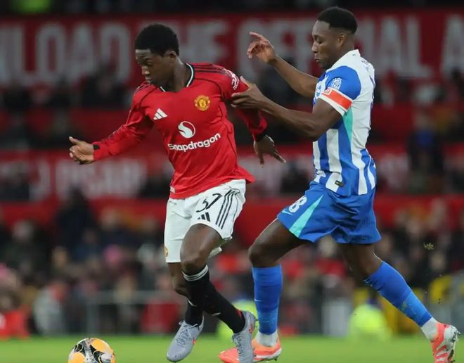 布莱顿这场比赛其实阵容并不齐整的,他们也进行了一定程度的轮换,所以曼联和布莱顿都算是阵容不完整的情况下对阵,而且曼联拿出了5中场的结构,B费+芒特+库尼亚+梅努+乌加特搭档中场,塞斯科突前。