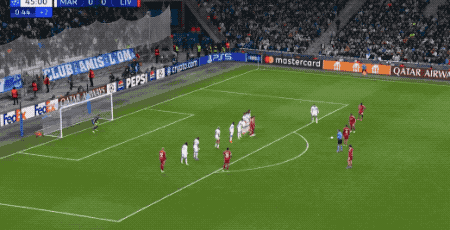 上半场伤停补时阶段,利物浦获得前场位置不错的任意球,马赛并没有甚至卧倒的球员,索博斯洛伊巧射,打破僵局。