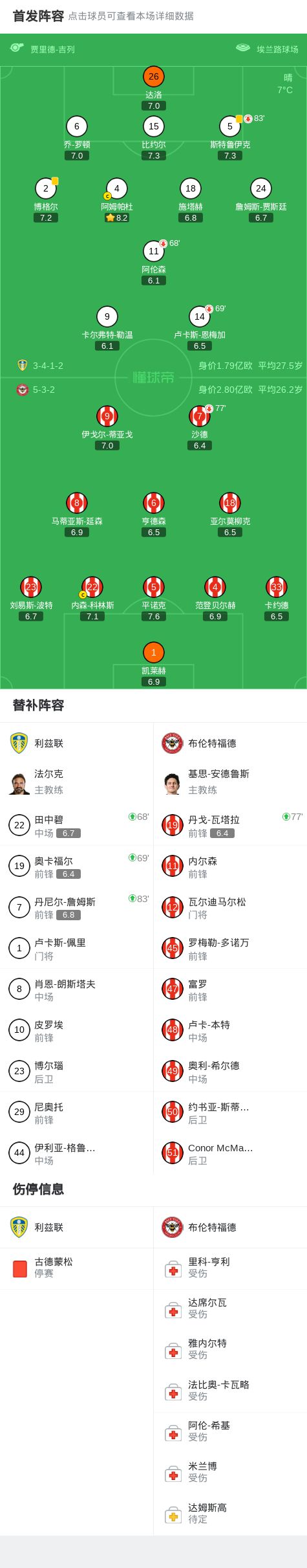 利兹联00布伦特福德,主队连续4场英超被零封,小蜜蜂2射正