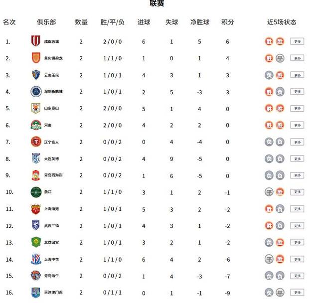 - 百度搜索:中超积分榜:成都蓉城领跑,两队积分“清零”