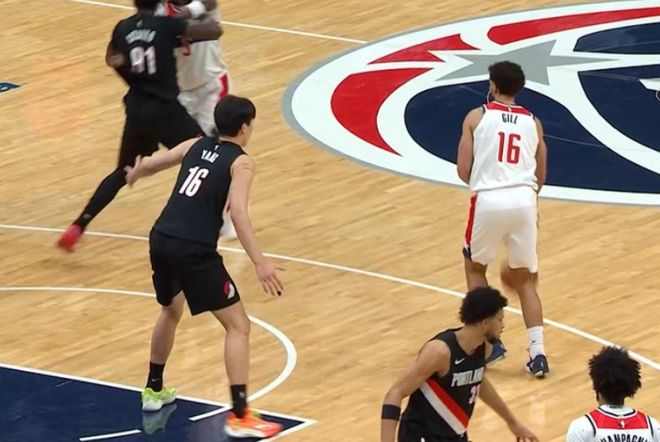 次节回来,吉尔贴身防守很凶,杨瀚森不惧对抗造成犯规,随后挡拆后顺下接霍勒迪传球,稳扎稳打勾手命中,次节开局取得个人首分。吕佩尔三分强投也中,开拓者领先到7分。杨瀚森挡拆后一个隐蔽反吊,卡马拉没看到,小杨失误+1,这个传球没问题主要是配合没默契,随后被换下场。